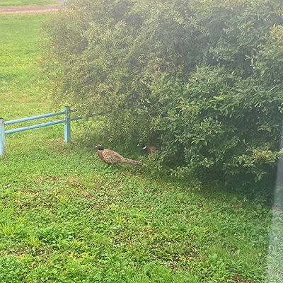 住宅の前は庭とちょっとした空き地になっていて、日中はコウライキジやシメの群れがのんびり過ごしている。庭に物干しコーナーがあったが外は虫がすごくて使うことはなかった。