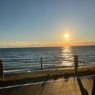 太平洋に沈む夕陽エリアって日本でも数少ないんじゃない? 期間中、海に雲がかかりがちだったので、真っ赤に染まった夕焼けまではいかなかったけど。